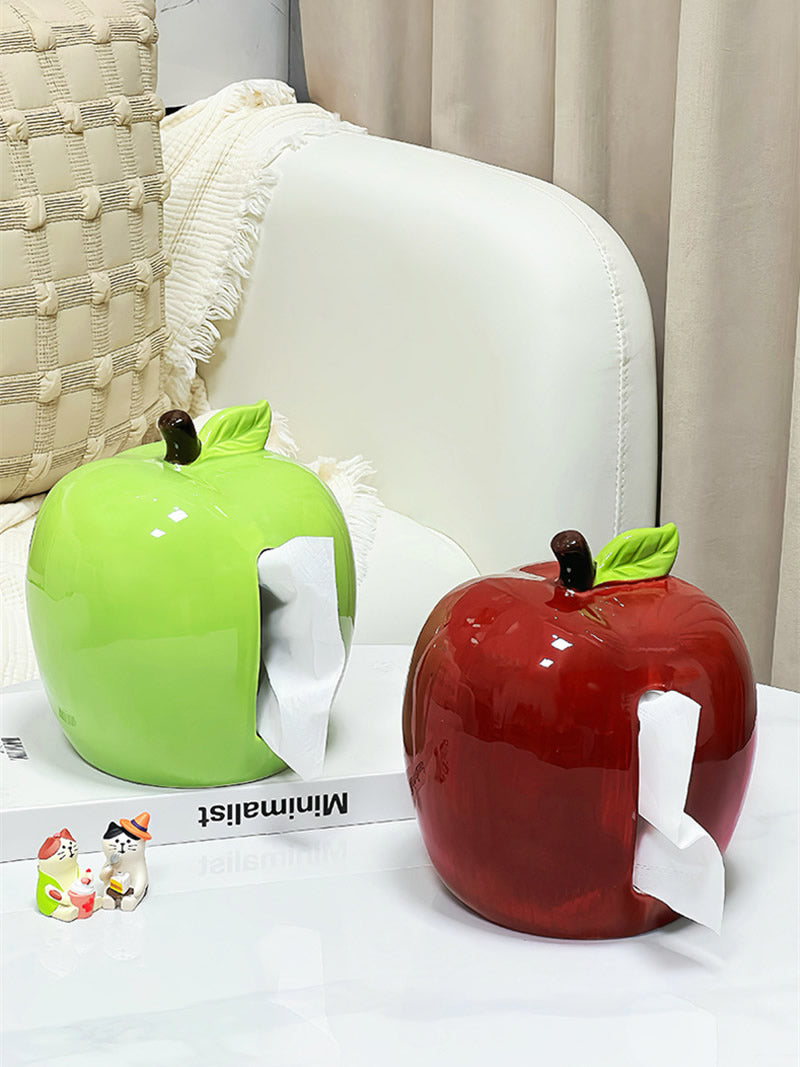 Apple Ceramic Tissue Box Holder - Cute Fruit-Shaped Dispenser for Home & Office