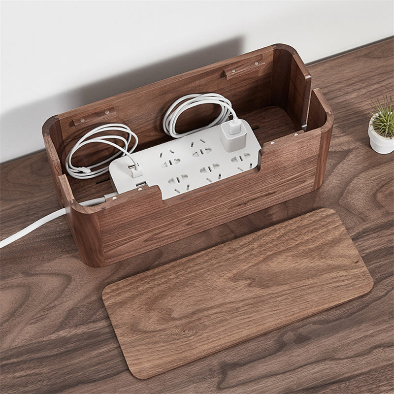 Black Walnut Wood Cable Management Box, Desktop Wire Organizer with Lid for Socket & Cord Storage