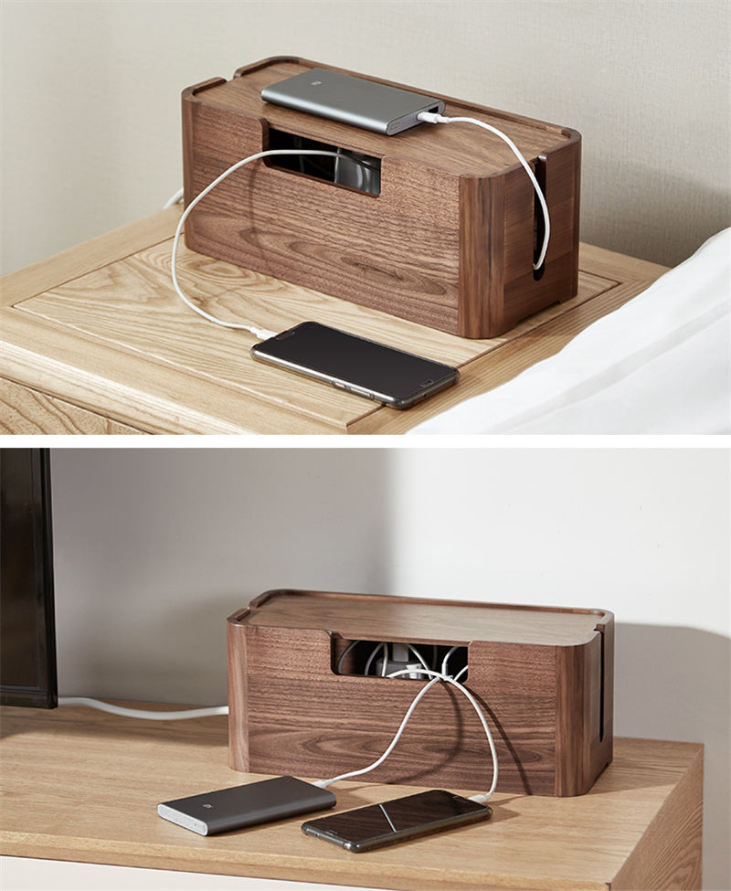 The solid wood construction ensures sturdiness and long-term use. The magnetic lid design not only improves convenience but also reduces the risk of children touching exposed cables, making it a safe choice for family spaces.