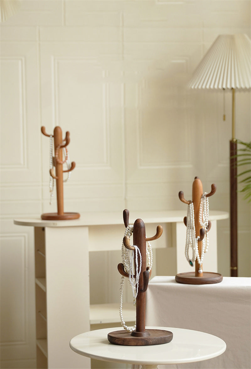 Cactus Wooden Jewelry Organizer – Rustic Necklace & Bracelet Holder Stand, Boho Jewelry Display