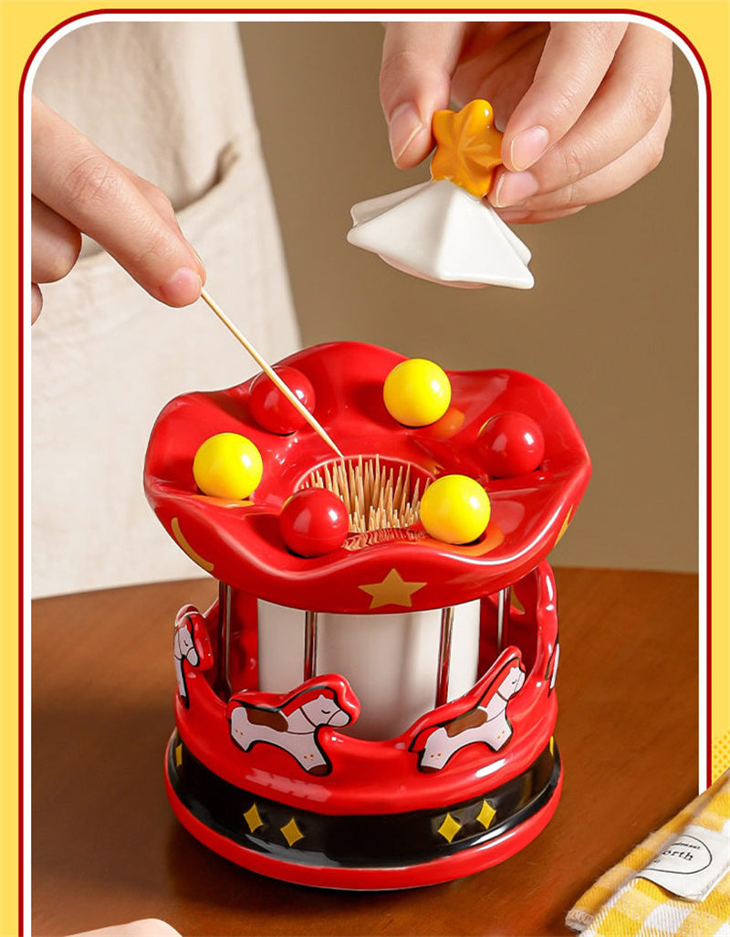 This Carousel-Themed Ceramic Toothpick Holder blends a playful carnival design with practical multi-functional storage, crafted from food-safe ceramic for a durable and festive finish: