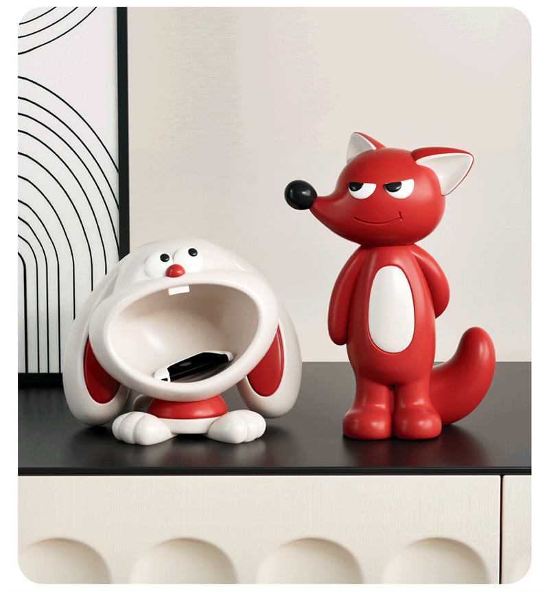 Cartoon Fox & Dog Decor Storage - Playful Animal-Themed Figurine & Remote Holder for Living Room Desks & Cabinets