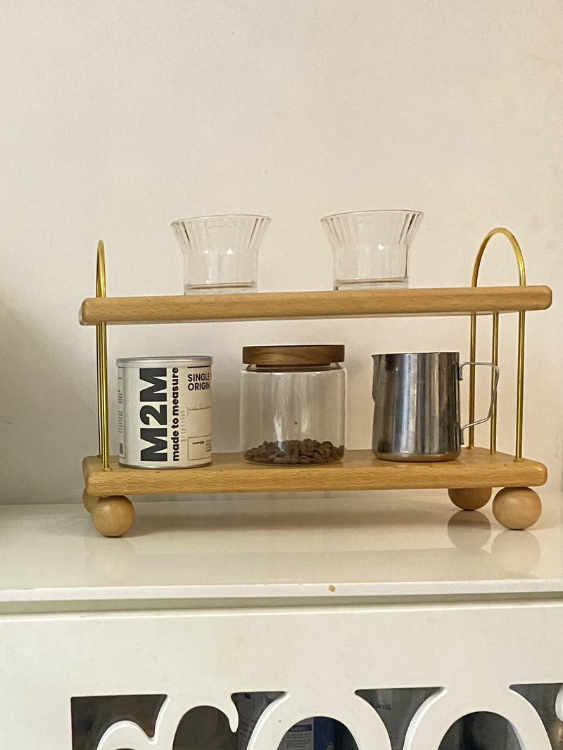 Classic Brass Wooden 2-Tier Desktop Organizer - Style Shelf for Office & Home