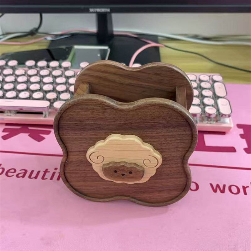 Cute Sheep Wooden Pen Holder - Black Walnut Wood Office Desktop Organizer