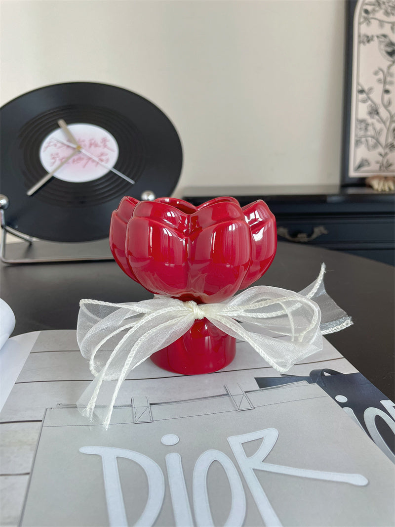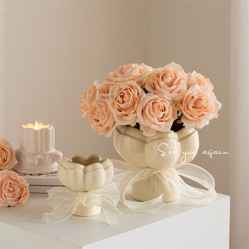Flower - Shaped Ceramic Vase, Romantic Decorative Vases for Home&Wedding