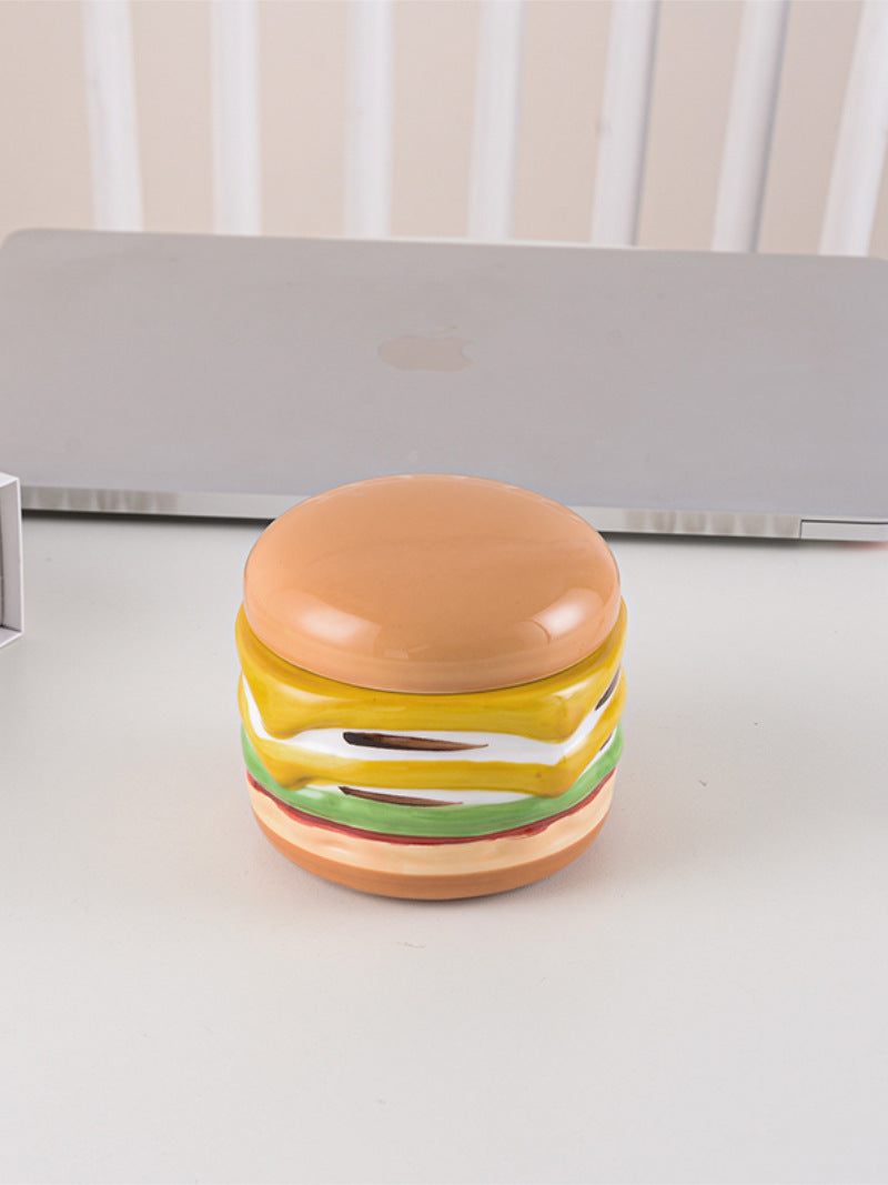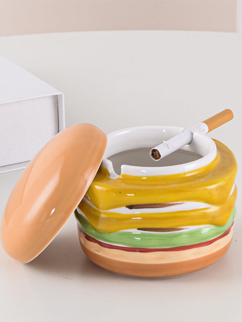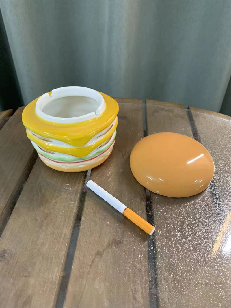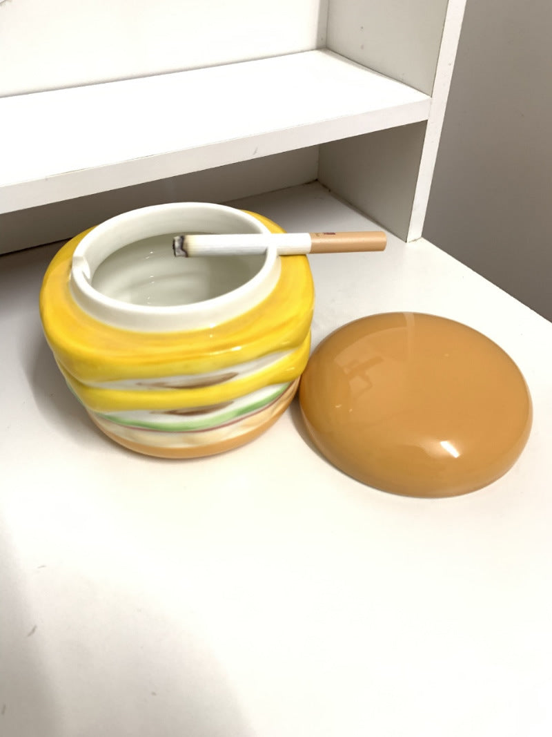Funny Ceramic Hamburger Ashtray, Unique Desktop Decoration