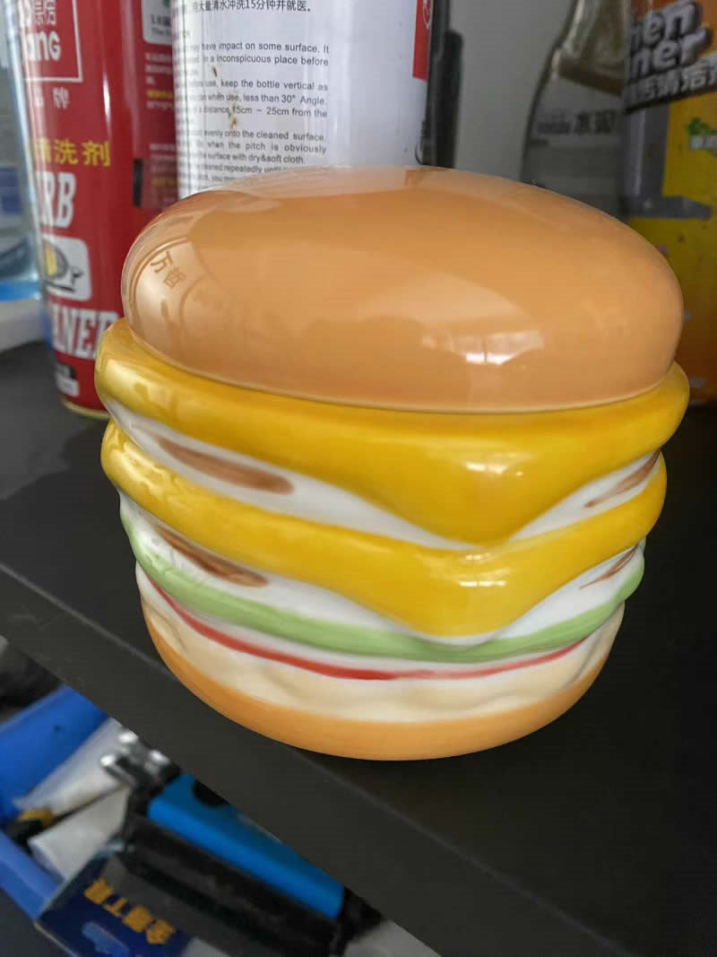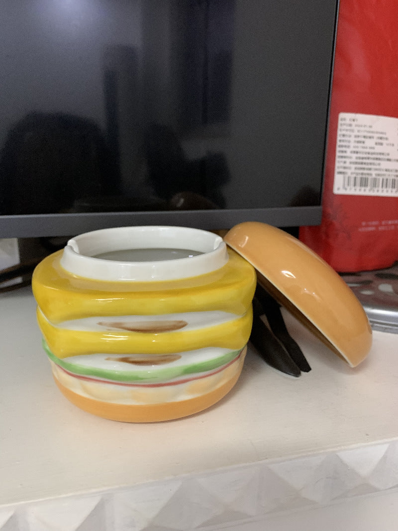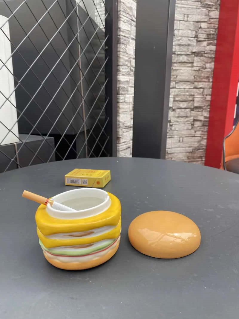 Add some humor and personality to your desk with our funny ceramic hamburger ashtray. This unique desktop decoration doubles as an ashtray, making it a practical and quirky addition to any workspace. Plus, it's sure to be a conversation starter!