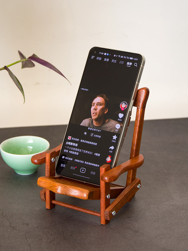 Mini folding chair wooden mobile phone holder, desktop small ornaments