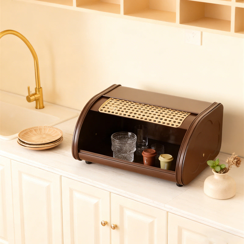 The top grid panel adopts a vertical sliding design, which is smooth and easy to operate; sliding reveals the internal open storage space, allowing intuitive access to items (suitable for storing small objects like keys, tableware, or cosmetic samples).