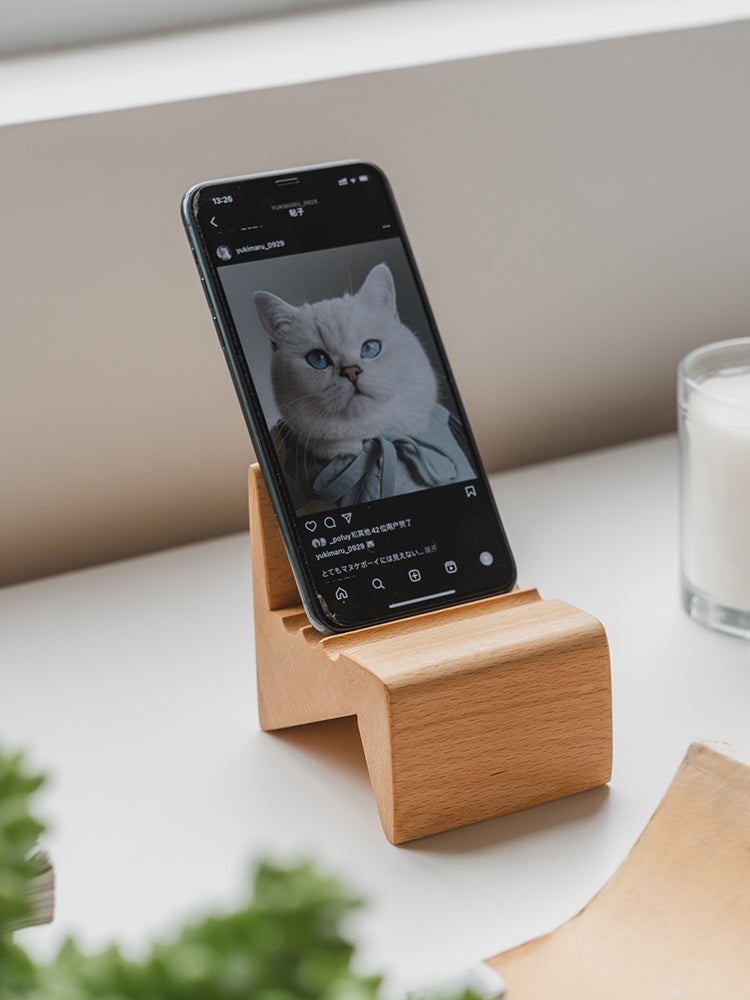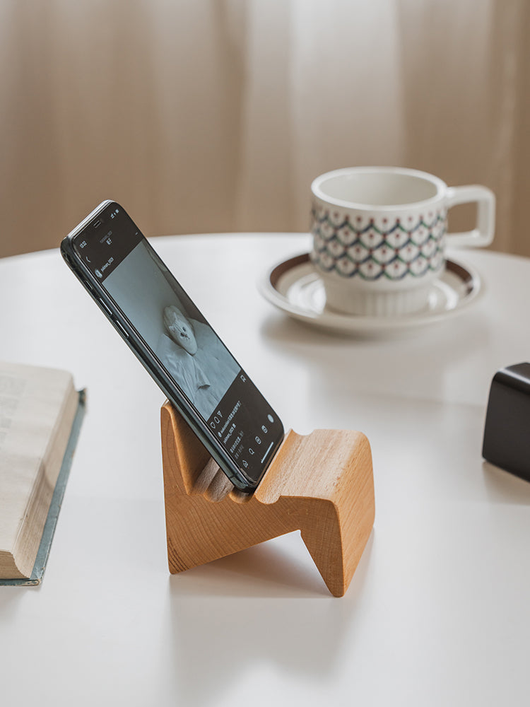 Add a touch of whimsy to your workspace with this one-of-a-kind adjustable angle wooden chair phone holder. Keep your phone at the perfect angle while adding a fun twist to your desk decor.