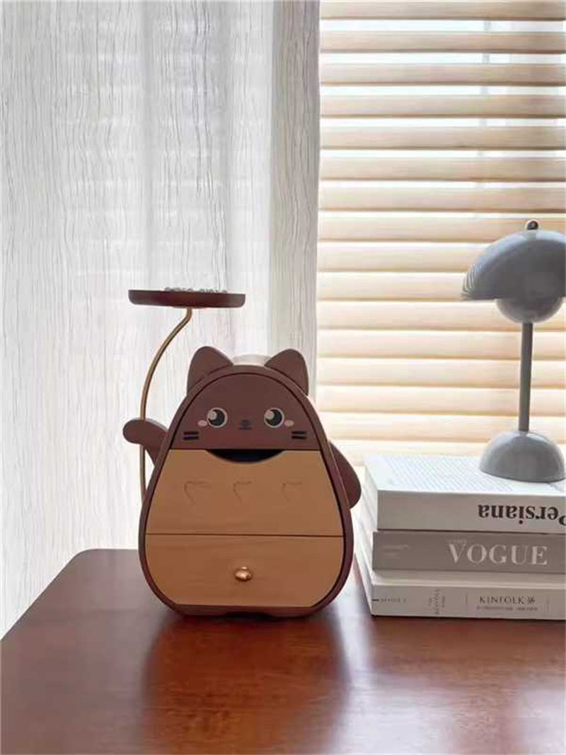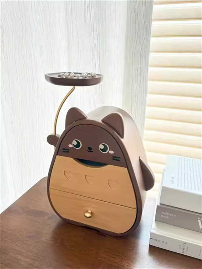 This adorable jewelry box features a charming cat design, crafted from high - quality wood. The cat's face, with big, expressive eyes and cute whiskers, adds a playful touch. It has two small drawer, and a top slot for easy access to frequently used items. The wooden finish gives it a warm, natural look, making it a perfect decorative piece for your desk or dresser while keeping your jewelry organized.