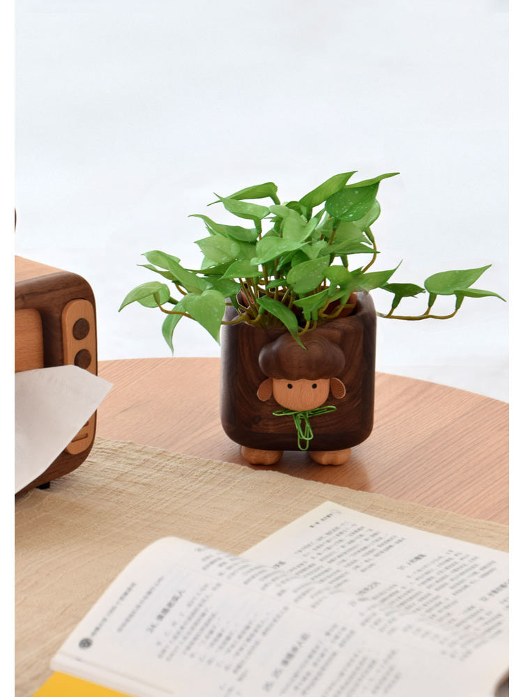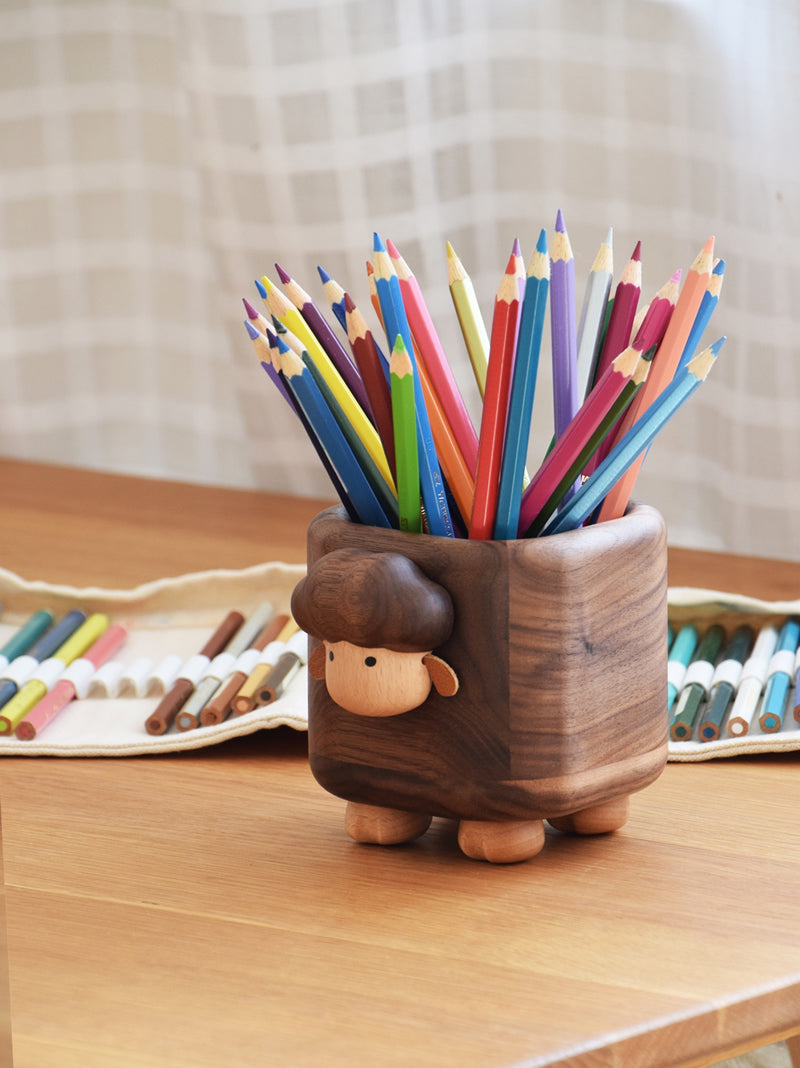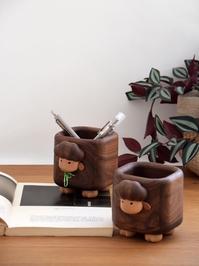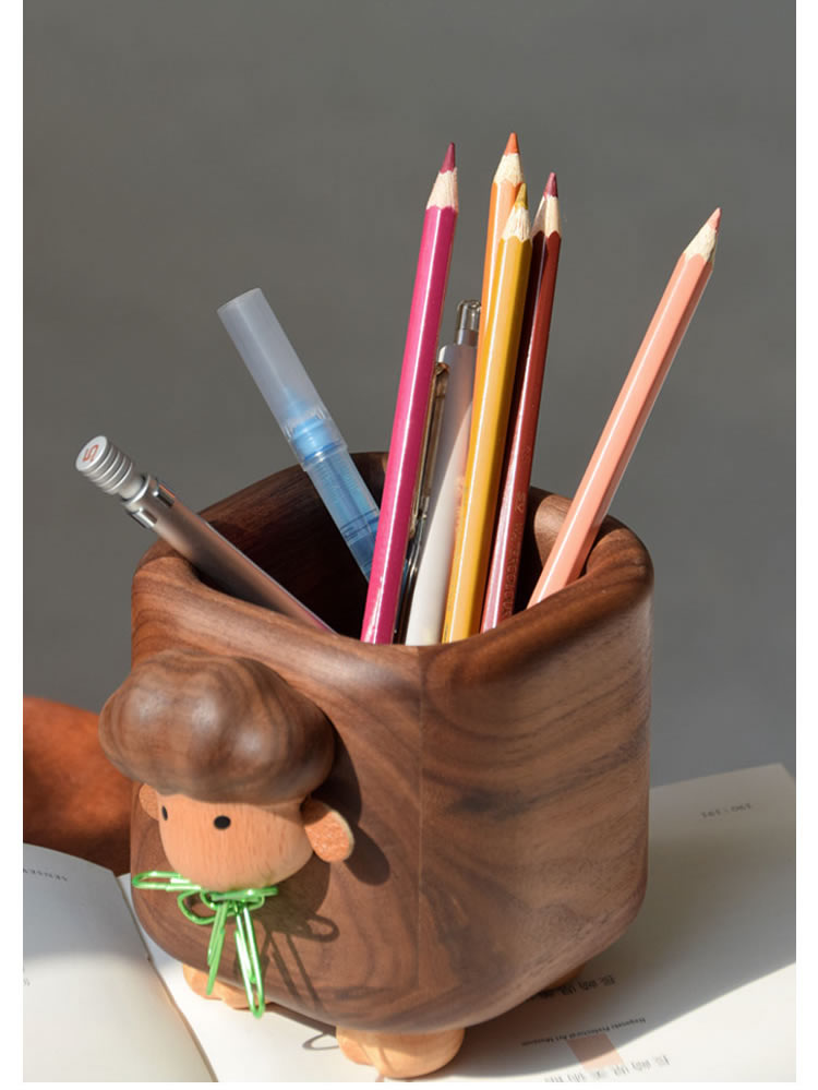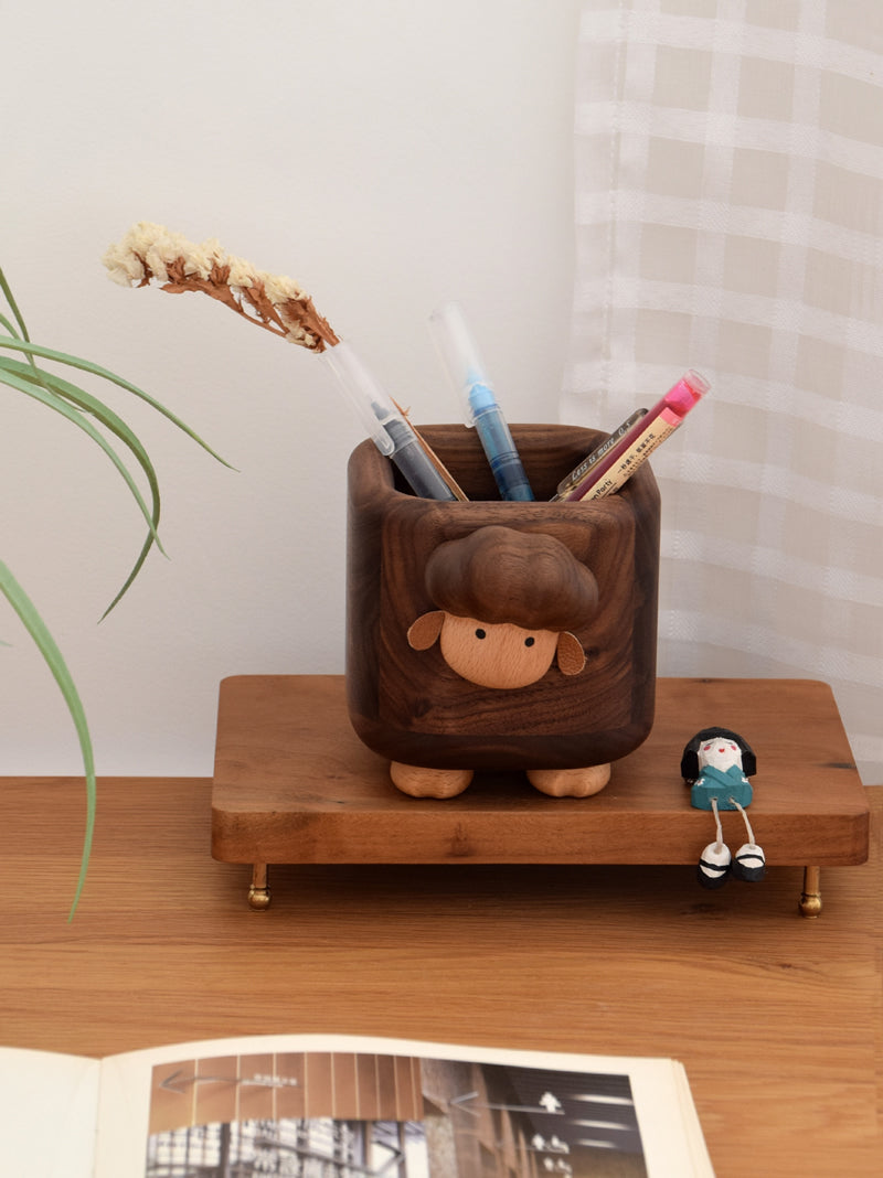 This Wooden Little Sheep Pen Holder is a functional and stylish addition to any office or study. Made with a black walnut design, it adds a touch of elegance to your workspace. Keep your pens, pencils and other small items organized and easily accessible. Makes for a creative and unique gift.