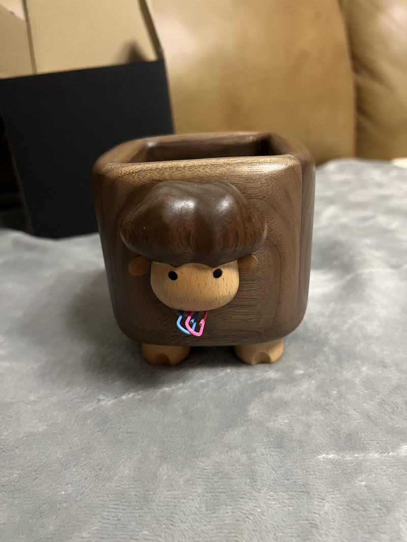Wooden Little Sheep Pen Holder, Small Storage For Office And Study, Creative Gift