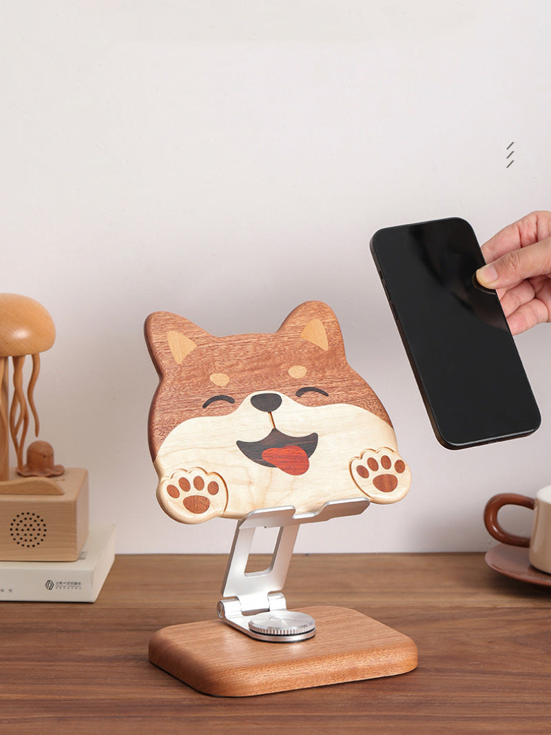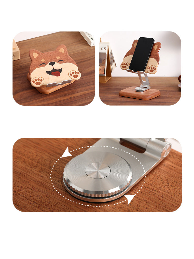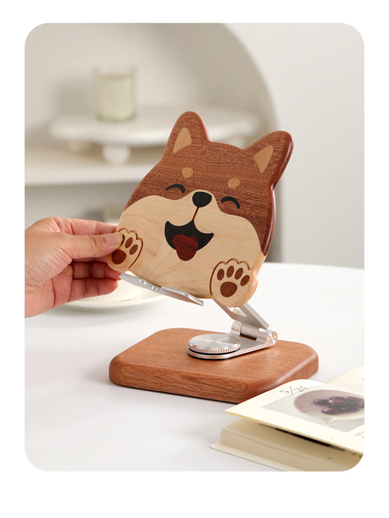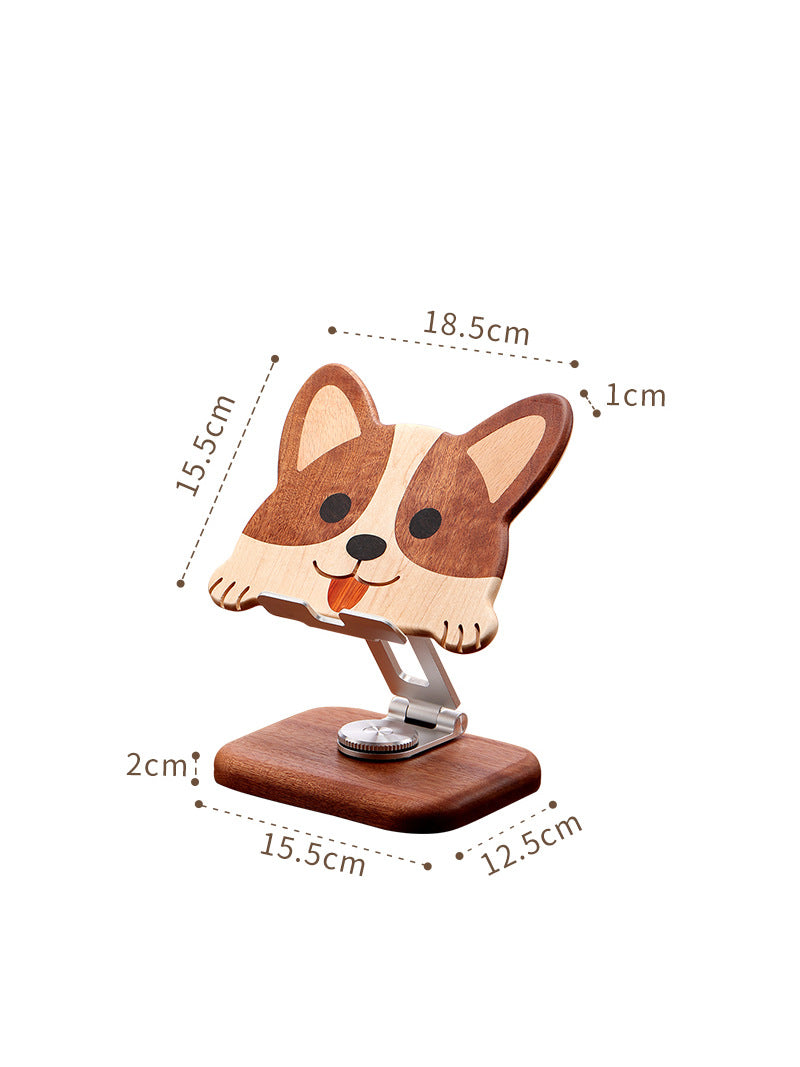Wooden Rotating Cute Dog Phone Holder, Ipad Stand