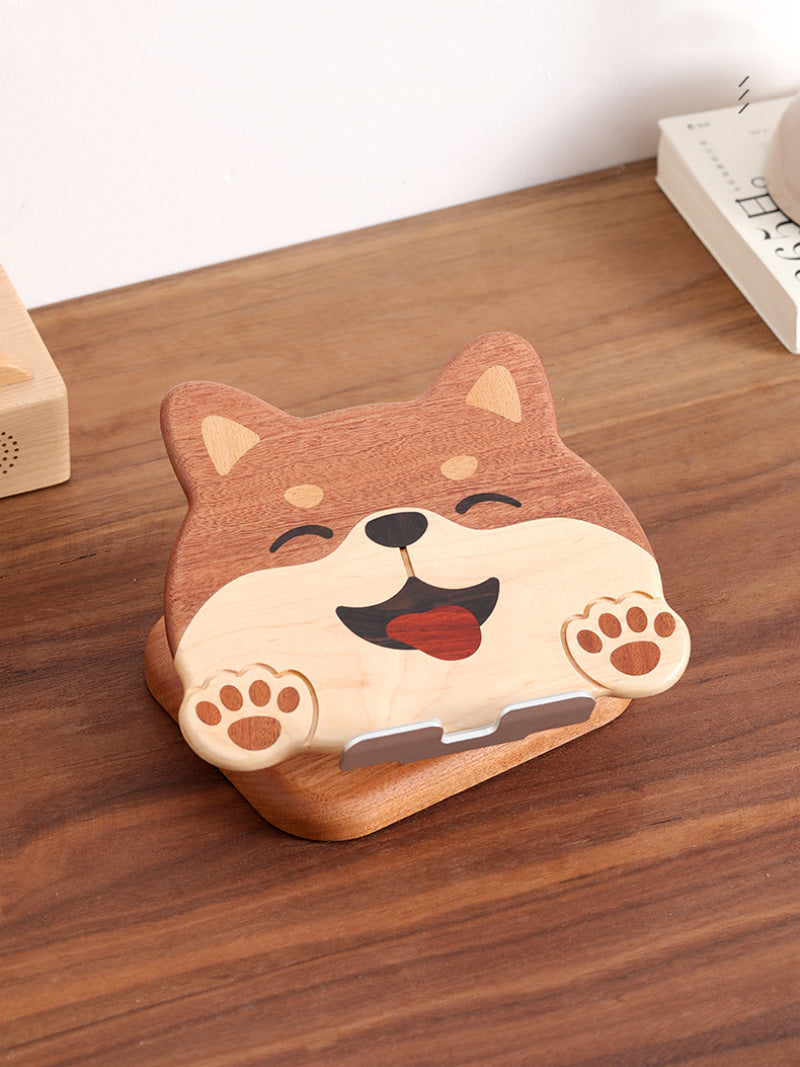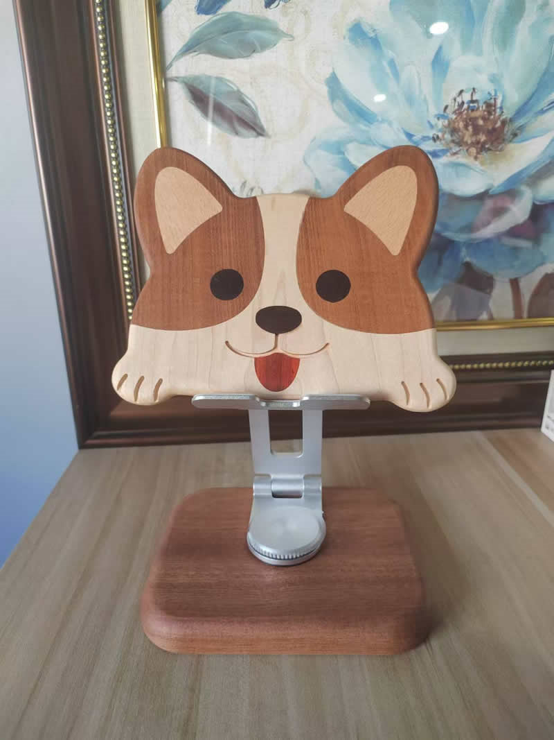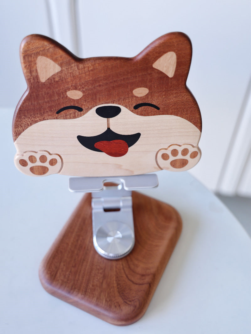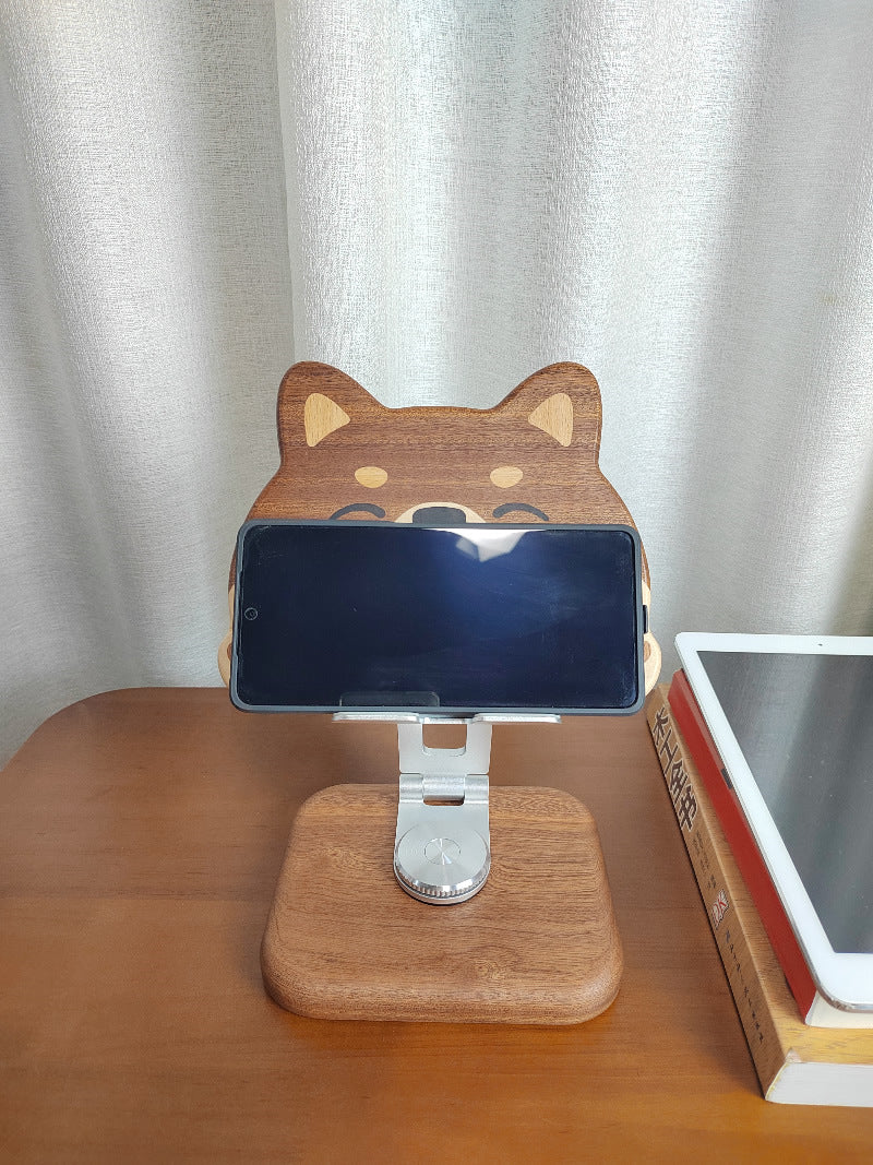 Wooden Rotating Cute Dog Phone Holder, Ipad Stand